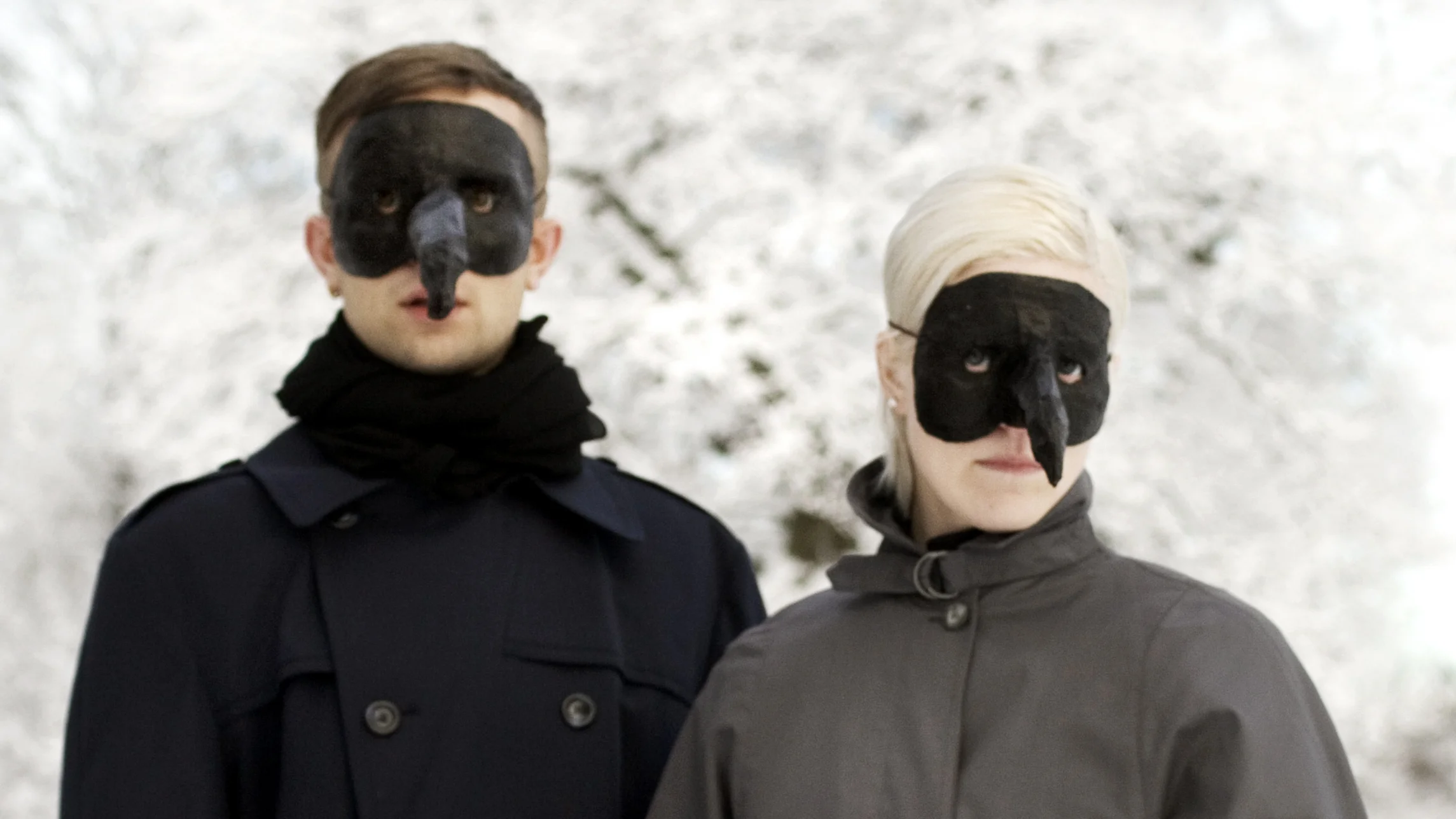 Olof and Karin Dreijer Andersson wearing their iconic Plague Doctor masks.